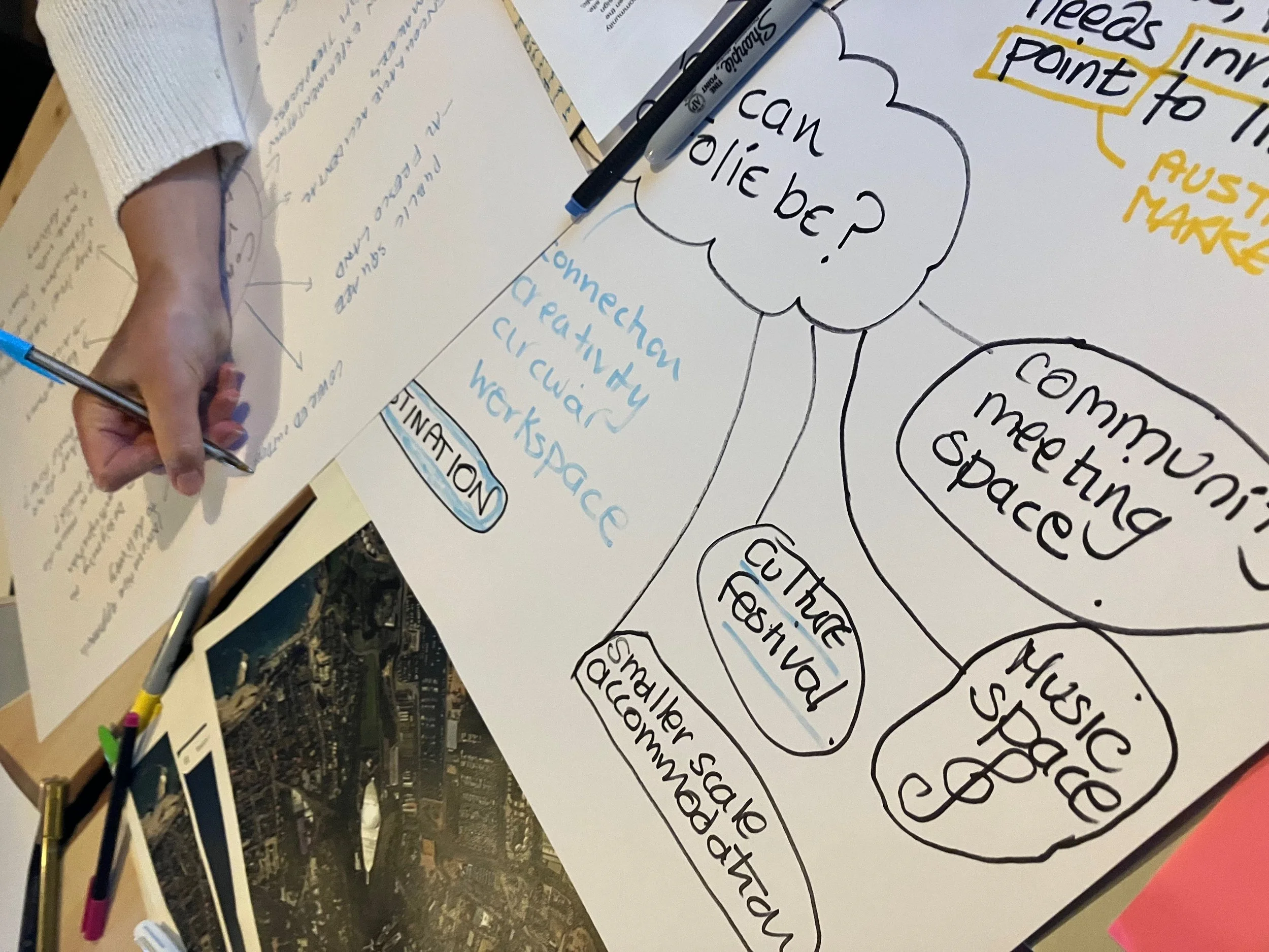 Following that, we were exceptionally lucky to be joined by Assemble—an internationally respected group of architects and community developers—who brought their experience to the table. They visited us and ran a workshop, helping to translate our shared ideas into a legible vision that reflects what our community would like to see happen on this long-term derelict site.