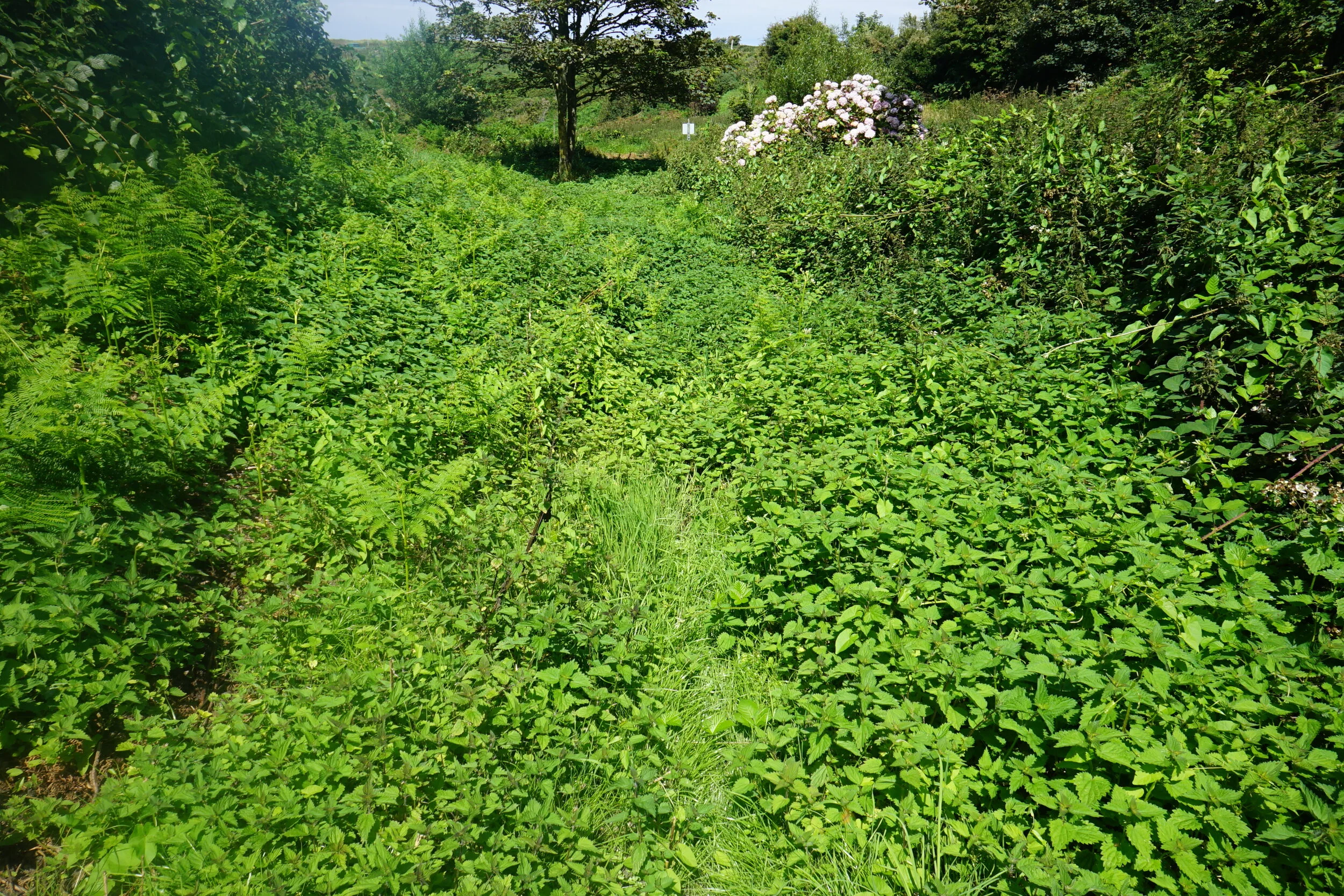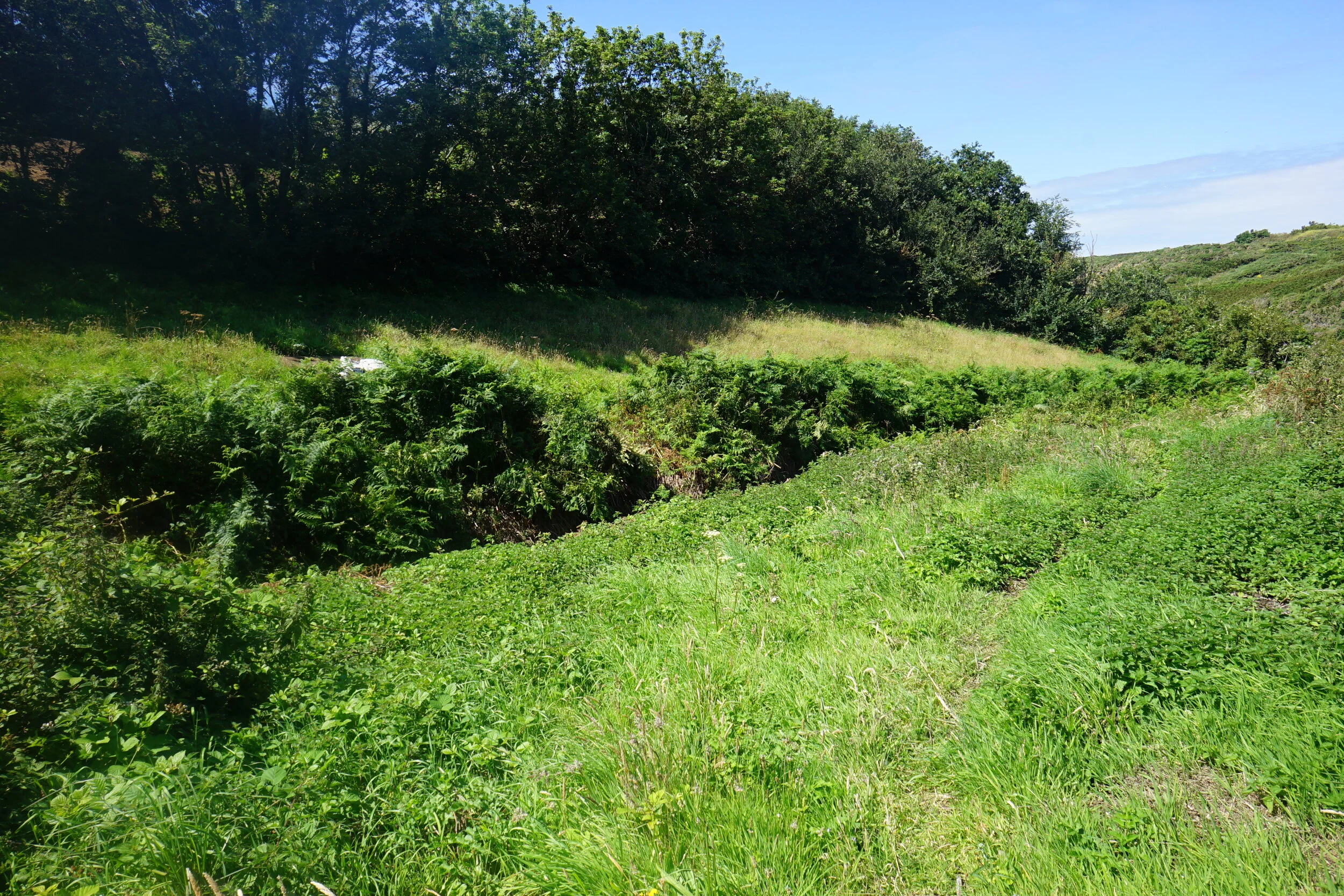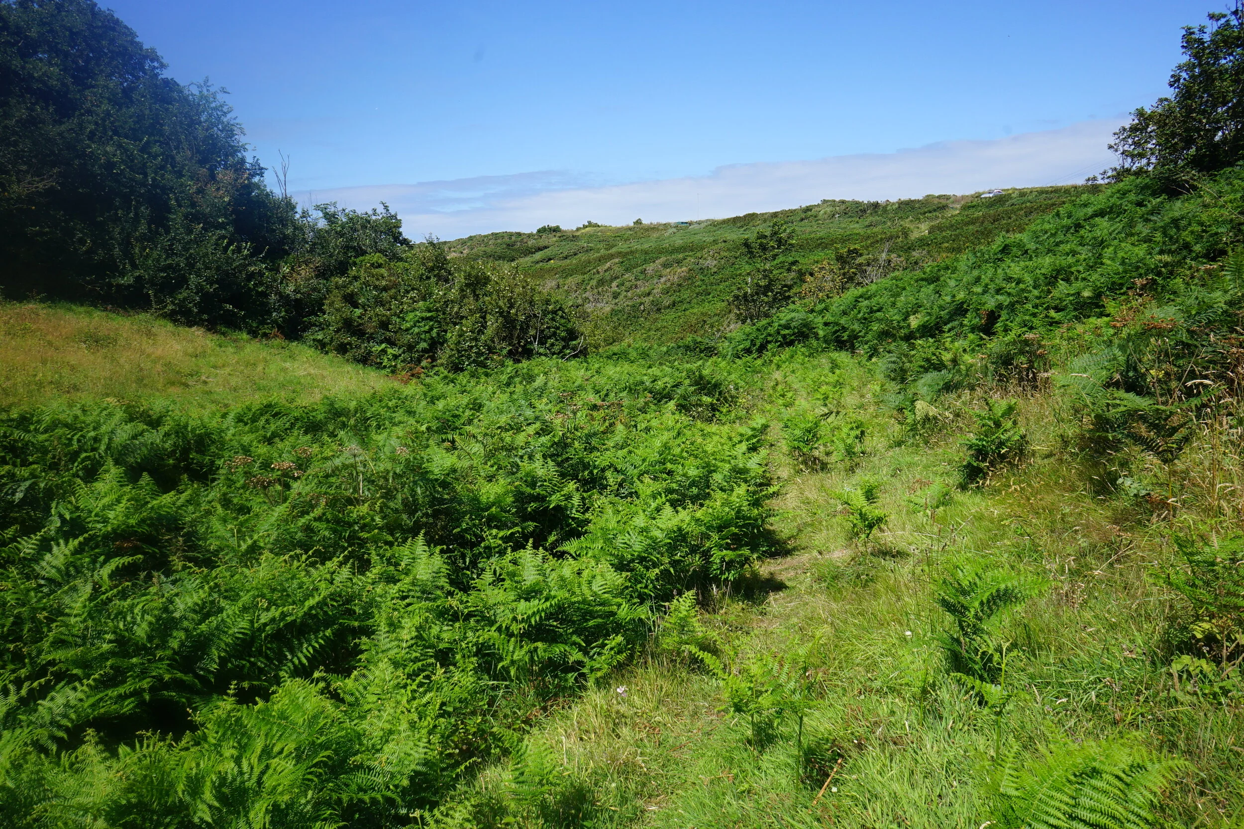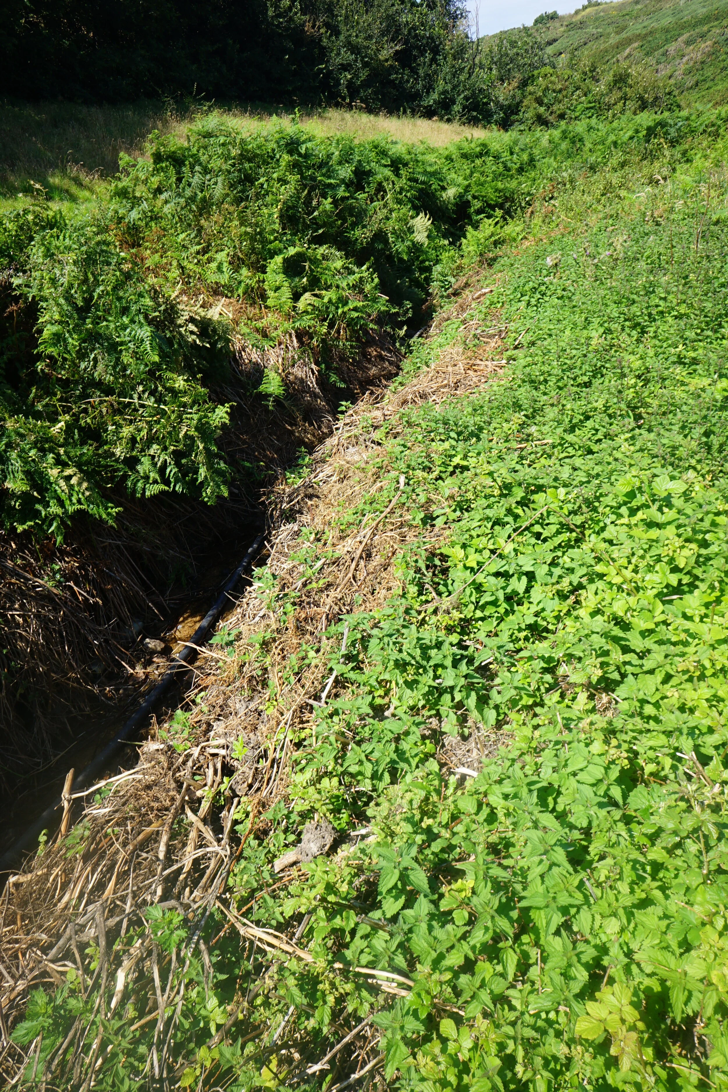 Bottom valley, with stream exposed from bracken pulling and strimming on the East side