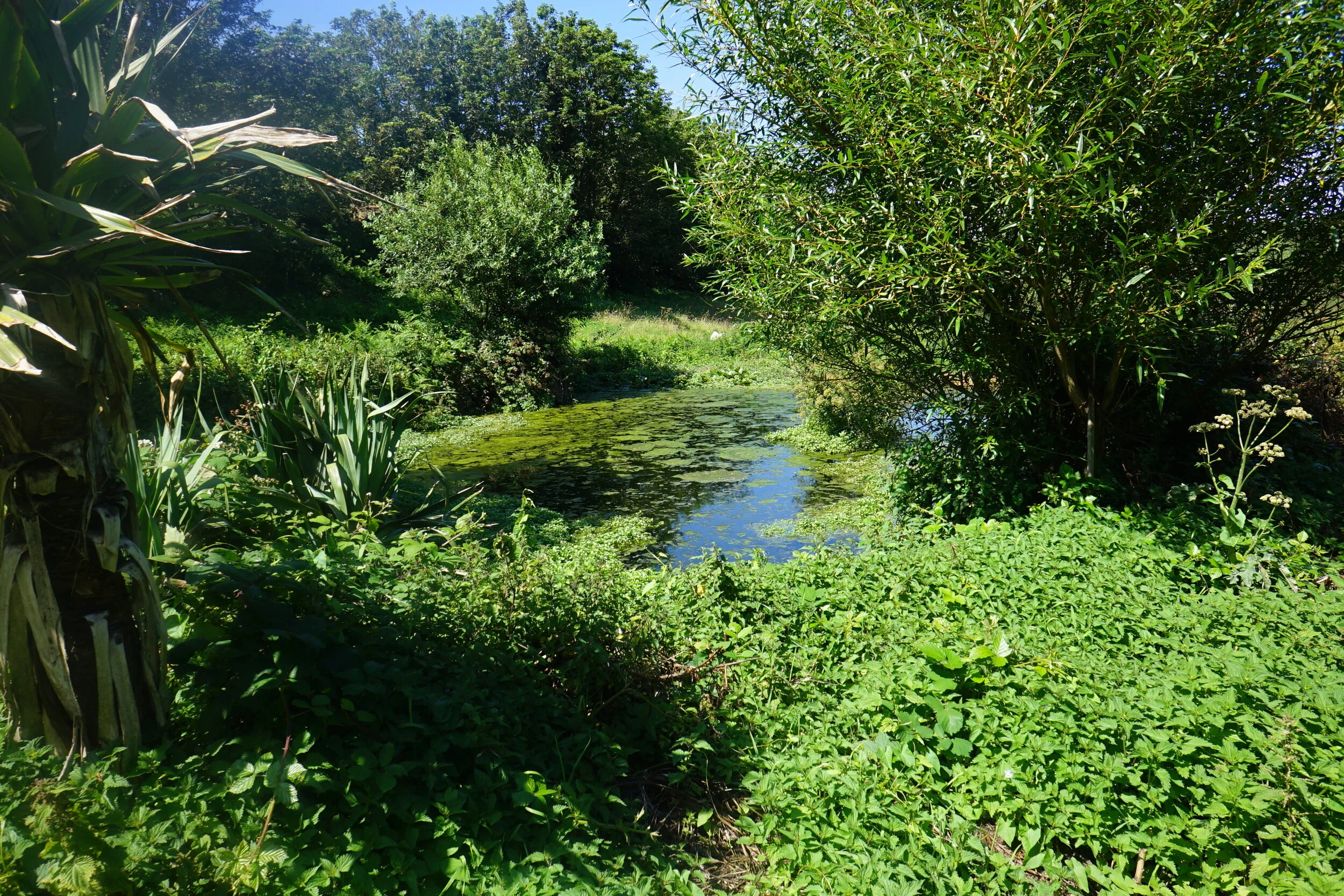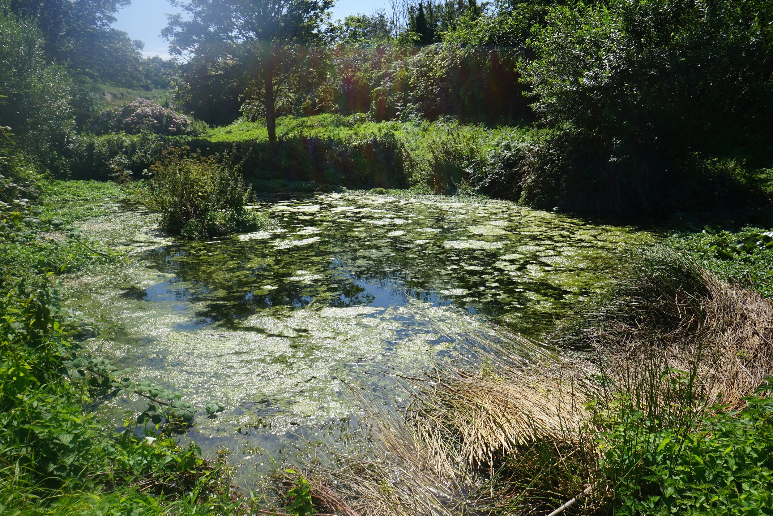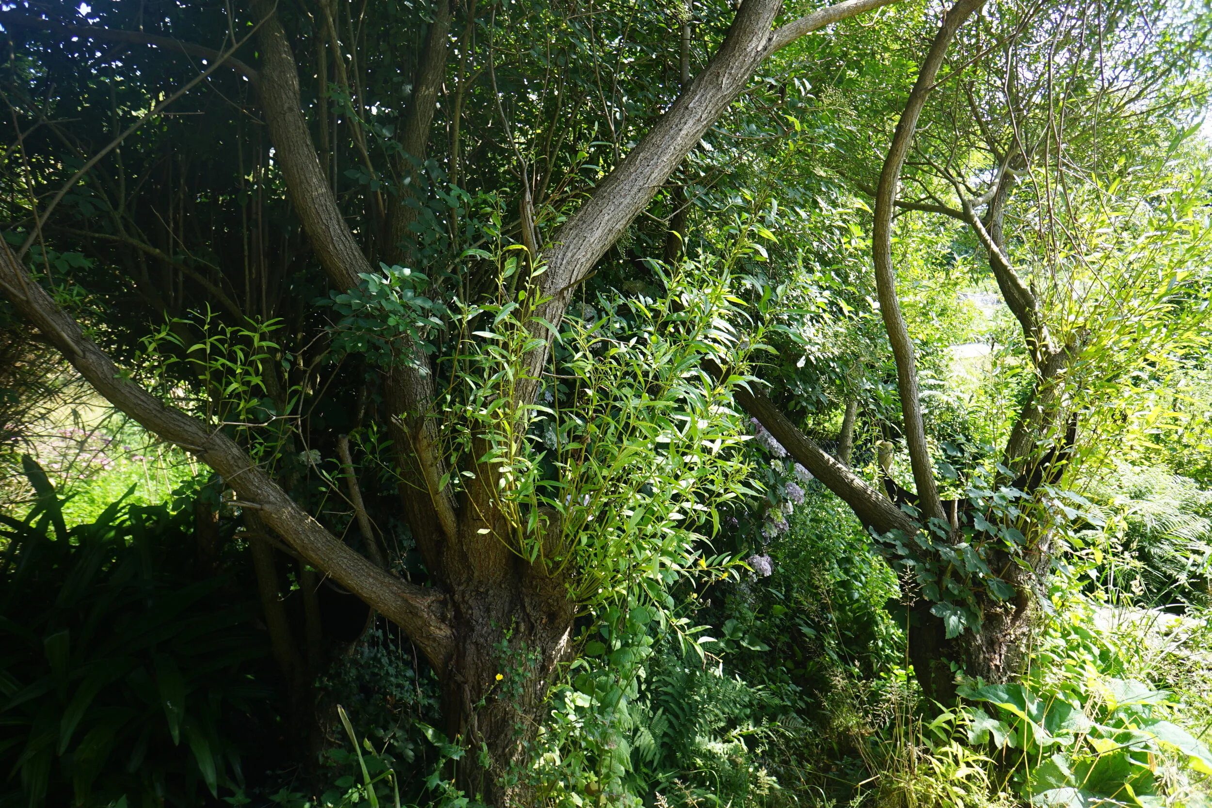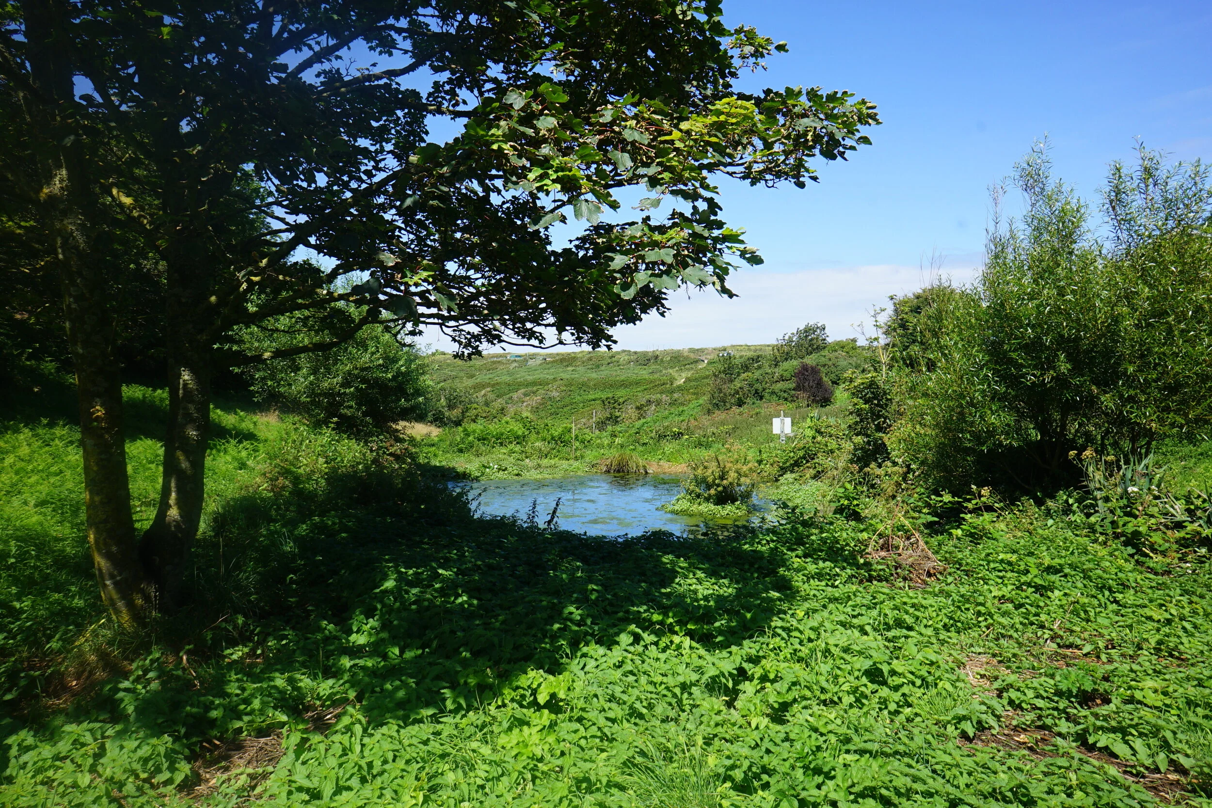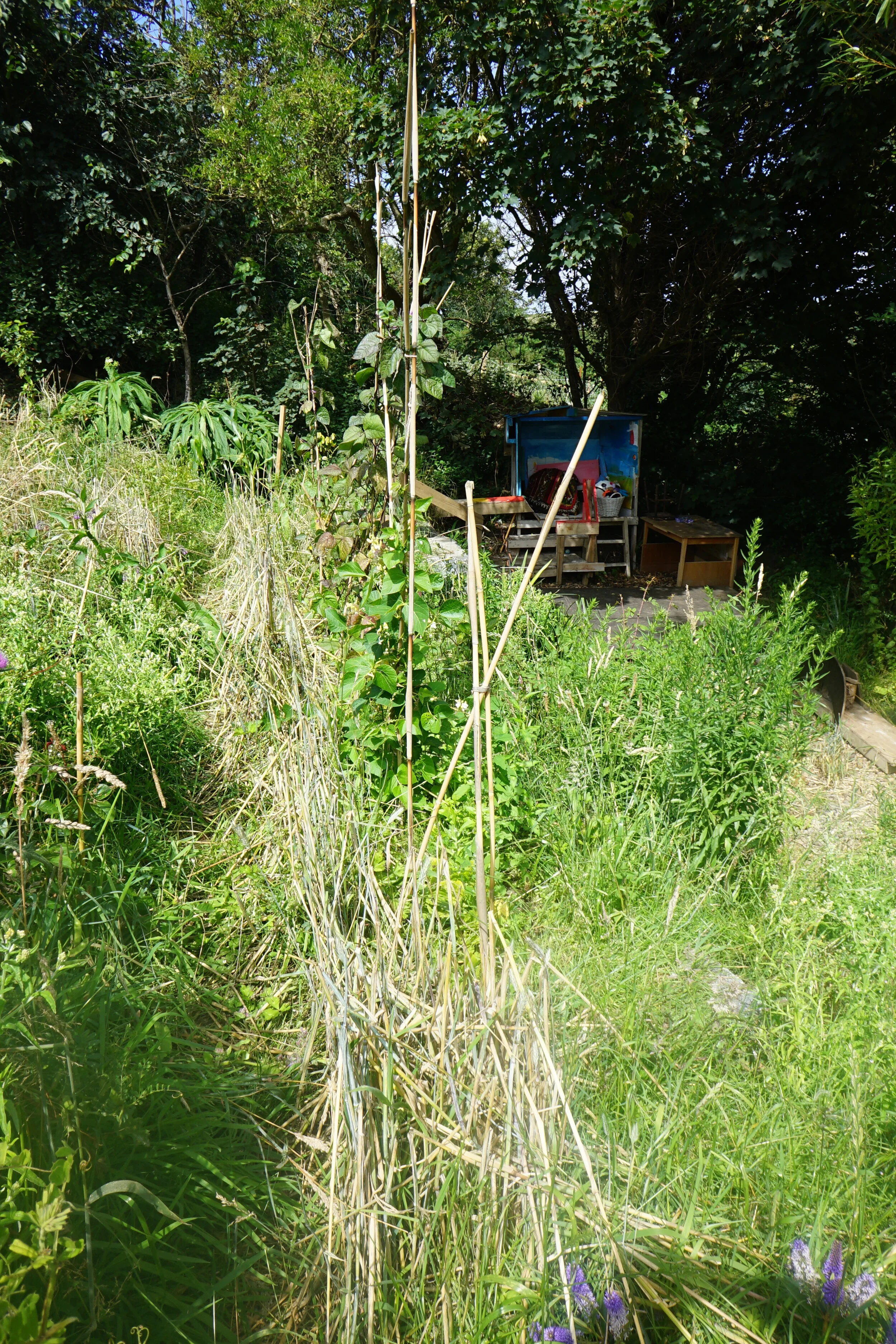 Bottom valley, with stream exposed from bracken pulling and strimming on the East side