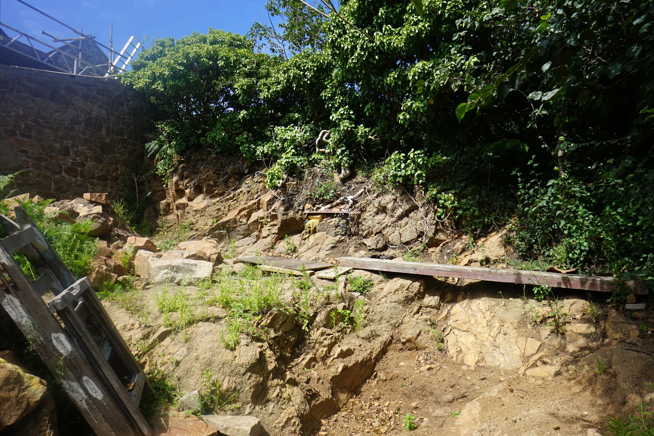 We have topographical survey on the land immediately around the house, including the new terracing we created last winter. This terracing was completed as we had to trench through this area to get onto mains water and redo the drains, so whilst it was all disturbed, we used it as a moment to terrace.. This area is currently relatively sheltered.